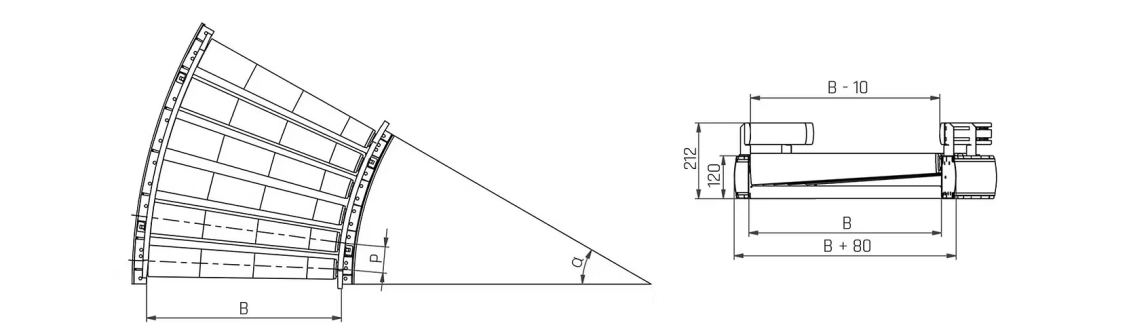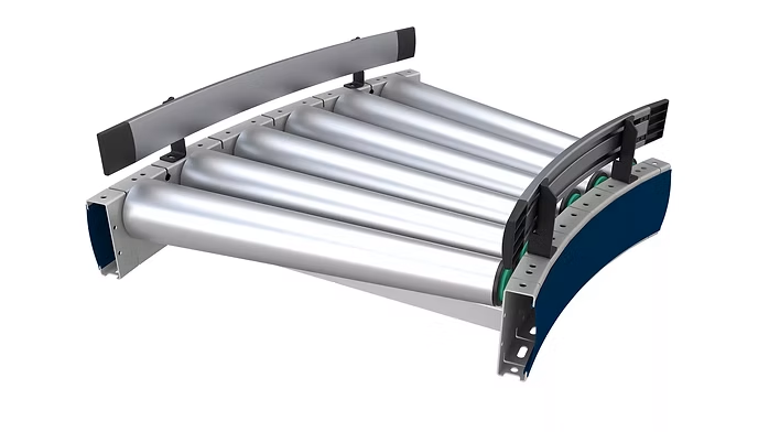 نوار نقاله گرانشی ۳۰ درجه (30° Gravity Curve Conveyor) قوس گرانشی ۳۰ درجه، برای تغییر جهت حرکت کالا در مسیرهای انتقال بدون نیاز به نیروی محرکه استفاده میشود. این تجهیز با بهرهگیری از نیروی جاذبه و طراحی منحنیشکل، جریان کالا را بهصورت پیوسته و روان در زوایای مشخص هدایت میکند. بسته به نیاز، میتوان آن را بهصورت افقی یا با شیب مشخص نصب کرد.
